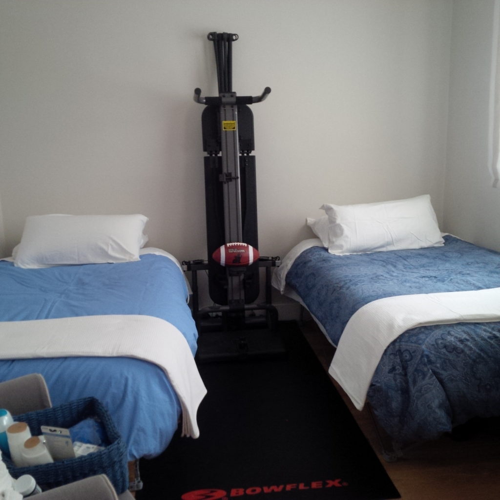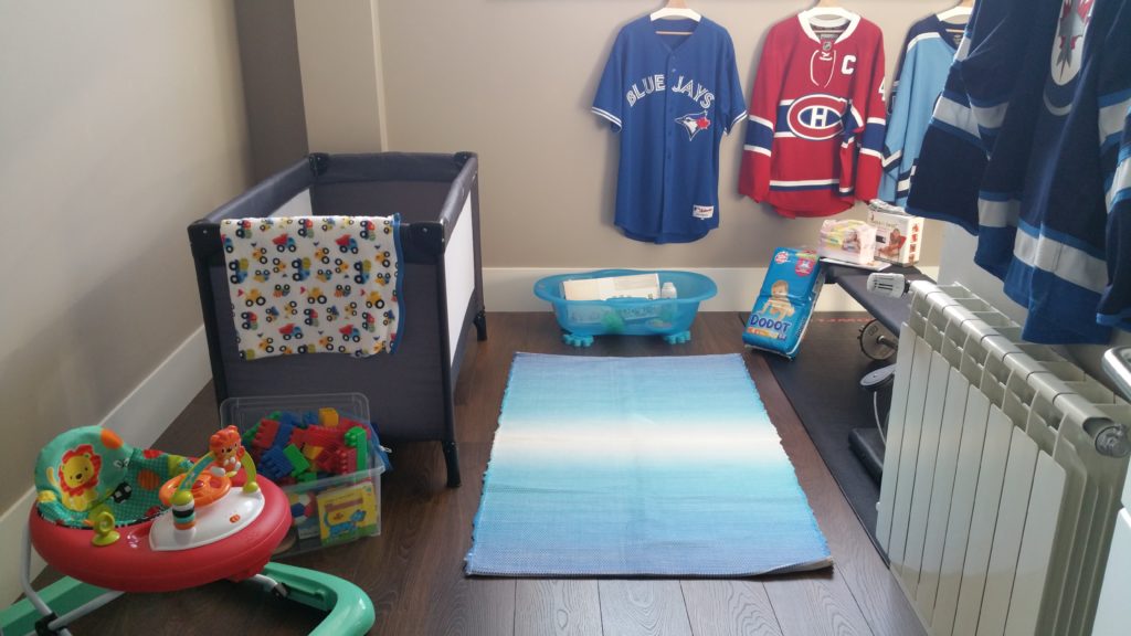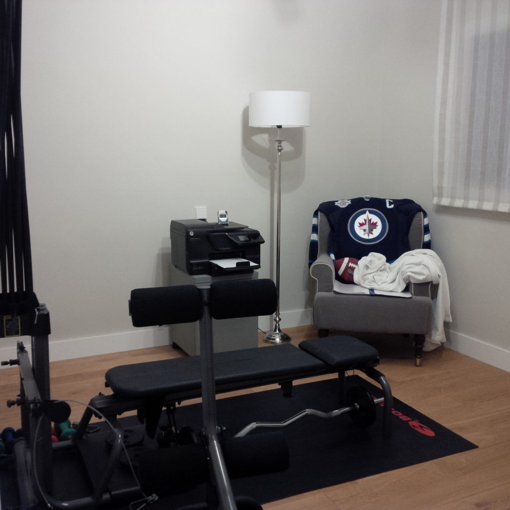 In our shipping container from Canada, was our Bowflex, which we were determined to use (Finally). So along with it, a desk and my husband’s clothing, claimed this ‘2nd bedroom’ as his ‘Den & Personal Dressing Room’.