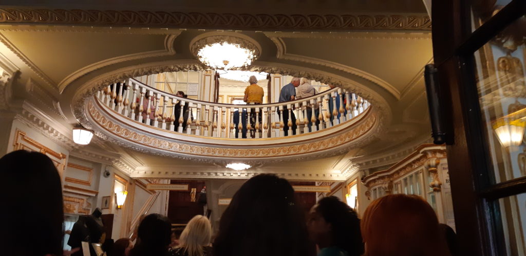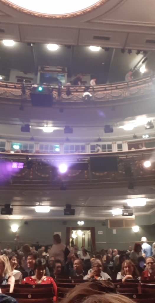 Our Adventure started with a 45-minute train ride into dowtown London. After a celebratory champagne cocktail at the Waldorf Hotel, we made our way across the street to the beautiful Aldwych Theatre. Where we promptly parked ourselves Front Row centre!